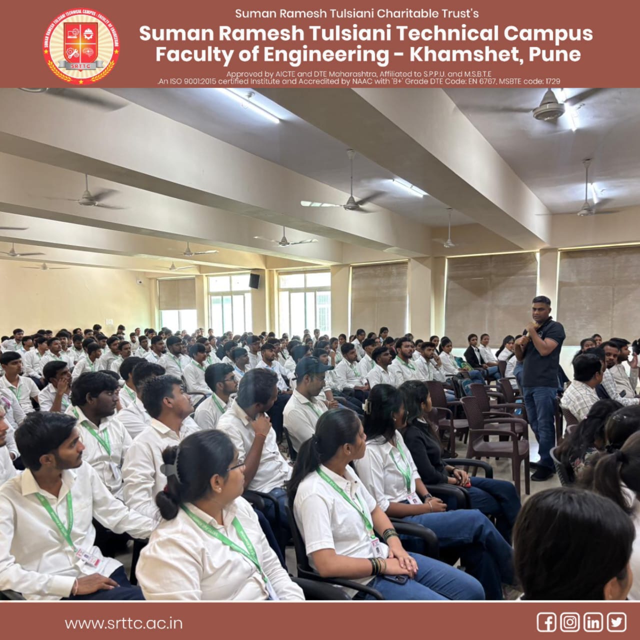 SRTTC Kamshet is a good institution which offers engineering degree by afliation with Savitribai Phule pune university. The college has good infrastructure and is located within nature. Good supporting staff and extra curricular activities. Good transport facility.